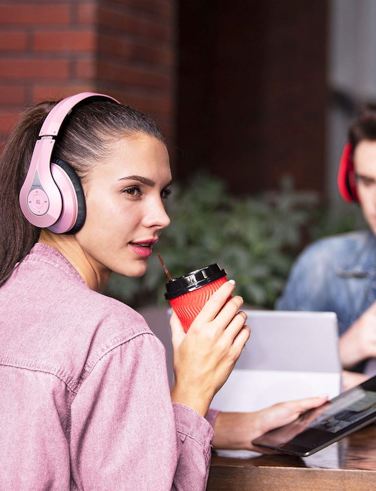 I can't tell you how many times I've yanked my headphones off my head because I accidentally pulled on the cable, whereas the Mpow Bluetooth headphones have no cables to worry about. These headphones fit over your ears to help block outside sound from interrupting your music — and ear cushions are designed to rest gently over your ears so that they don't grow sore as you wear them. The battery will last for up to 20 hours of playtime when it's completely charged, and if you're in a rush, a quick 10-minute charge will provide you with up to two hours of music.