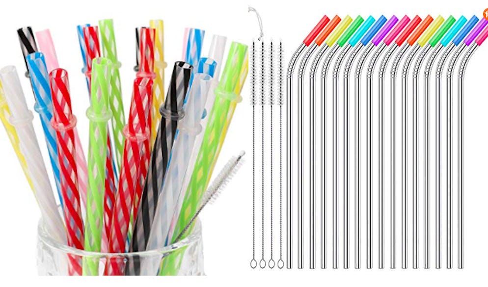 StrawExpert's Stainless Steel Straws come with 16 in a pack to give you shape and size options. Each have a colorful silicon tip, and each pack comes with four cleaning brushes. These cost $9.99 on Amazon.