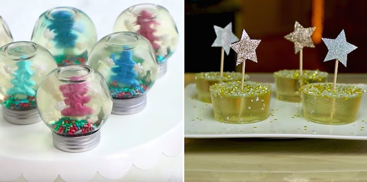 No winter wonderland is complete without a tip to the stars. These pretty champagne Jell-O shots are as tasty as they are cute, so no worries there. They're also super easy to put together — make your Jell-O shots as usual, top them off with edible gold glitter, and don't forget the star topper. Simple and sweet.