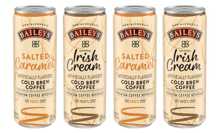 That's right: Baileys' new cold brew coffee cans are non-alcoholic, but they seem just as delicious their boozy bottled cousin. According to Amazon, the coffee comes in two flavors: Salted Caramel and Irish Cream. Each "premium coffee" selection is made with 100% Arabica coffee beans, which means you'll get your morning pick-me-up with every sip. In addition to coffee, the cans also contain milk — so it's best to keep 'em refrigerated after opening them. For a complete list of ingredients, check out Amazon's product page and click on the "Ingredients" visual for each flavor.