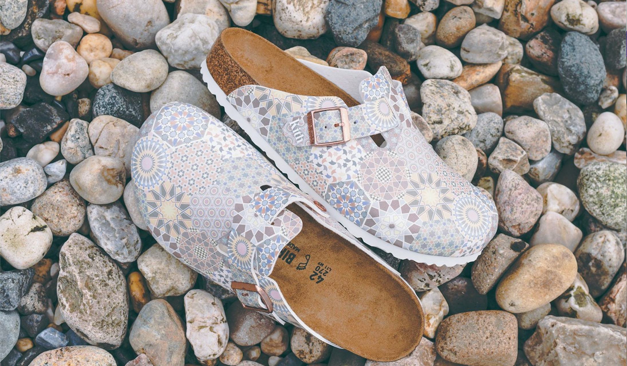 Available now online, the KITH x Birkenstock Boston style ($180, kith.com) sees one of Birkenstock's classic silhouettes get a fresh update that's perfect for summer. Its upper is outfitted with a kaleidoscopic print in soft neutrals and pastels that will remind you of gorgeously arranged Moroccan tiles. It looks a bit like a gorgeous optical illusion in footwear form. Suede footbeds ensure the clogs will feel as comfy as you'd expect from a Birk, while cork midsoles and a white sole add a fresh appeal to the style. Finally, rose gold buckles finish off the shoe in truly trendy style, while KITH branding is stamped on the strap. They're the perfect shoe for any casual summer hang and would make your go-to outfit of cutoffs and a white tee look exceptionally good. The fact that you can slide in and out of them with ease is the cherry on top.