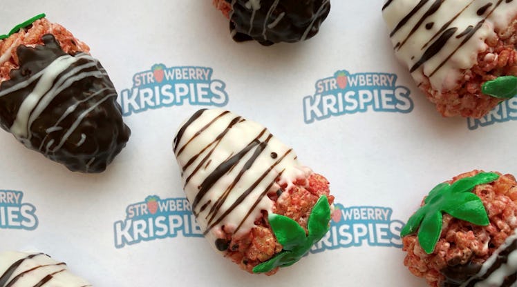 From chocolate wine to heart-shaped cheeses, there's no shortage of tasty treats you can get down with on this Valentine's Day. Kellogg's is getting in on the fun with these chocolate-dipped Strawberry Krispies Treats. The sweet goodies will only be available for a limited time in New York City. But what about the rest of us who don't live in NYC? You're in luck because these strawberry chocolate treats are easy to make at home.