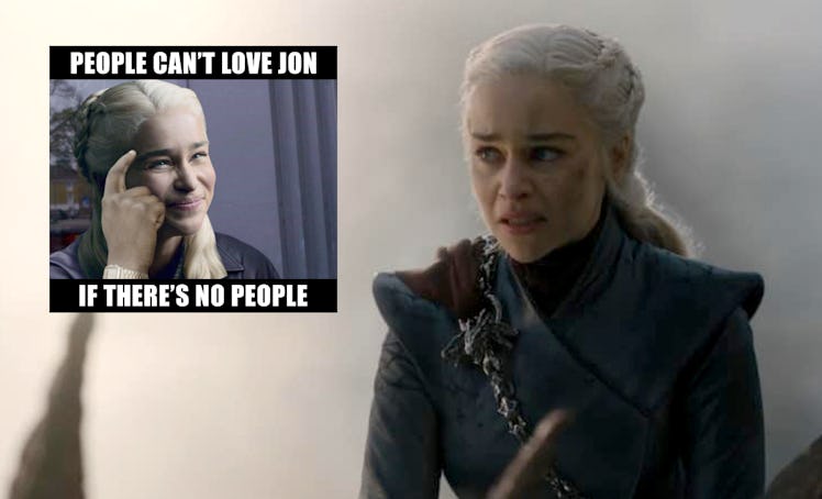 As you can see, a lot of the memes blowing up on Twitter following Dany's big breakdown revolve around predictions of how the rest of the characters on the show will respond to her rampage in the series finale. For instance, Sansa has been right not to trust Daenerys all along, and Jon Snow clearly had a change of heart after seeing his girlfriend/aunt murder hundreds of innocent people. Since Episode 5 ended before we actually got to see Daenerys land with Drogon, it is evident that the series finale will largely revolve around the remaining main characters confronting Dany over her murderous actions.