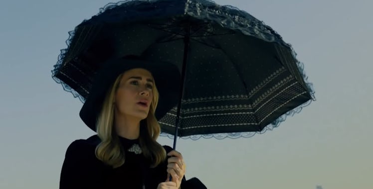 If you love Zoe and Madison's elegant simplicity but want to kick it up a notch, it's time to replicate Cordelia's own black hat look. While copying her dark clothing and wavy hair is stress-free, you'll need to commit to find the ultimate Gothic parasol that your Cordelia will tote around all night. Target offers an inexpensive lace parasol that could work in a pinch, but if you're committed to total accuracy, shelling out some more money for a parasol on Etsy or covering your own umbrella with black lace is the way to go. Compared to Sarah Paulson's other Apocalypse characters, being Cordelia is likely the most recognizable option, but dressing as Wilhemina Venable or Billie Dean Howard also has its pros and cons.