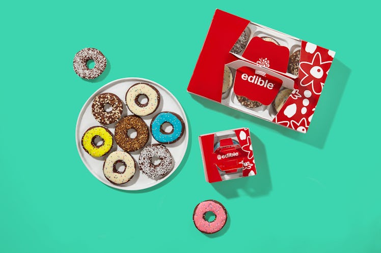 Edible is best known for its fruit arrangements that are made to look like a bouquet of flowers. Well, it still sells its fruit designs, but now you can order one up with an extra special treat. Edible offers two fruit bouquets in three different sizes. Each design is complete with Edible Donuts (awesome) and can be purchased from Edible's online store. The FruitFlowers Bouquet with Edible Donut starts at $29, while the Delicious Fruit Design with Edible Donuts starts at $68.