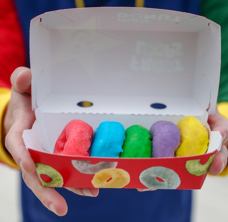 Maybe you prefer to start your day with a quick jog, some pushups, and a green juice. Or you might simply snooze your alarm two (or eight) times before willing yourself to actually wake up and get ready for work. But I — personally — thoroughly enjoy starting my day with a flash of bright color. So, you could definitely imagine how happy I was to hear that Hardee's & Carl's Jr. Froot Loops Mini Donuts are back. They look (and taste) just like the classic breakfast cereal, and I am seriously all about it.