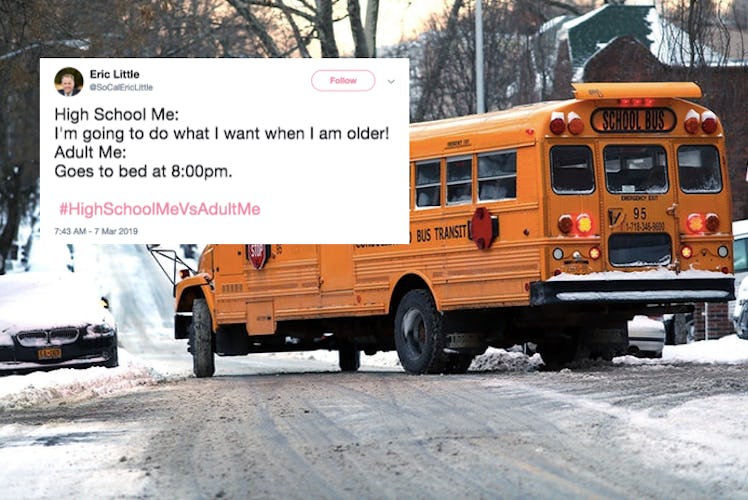 Maybe these days you are more inclined to fill your weekend with naps and TV rather than various adventures and all-nighters like you did in high school. Or, there's a chance you appreciate coffee a little more now than you did back then. Either way, most people can relate to the fact that their adult selves are a lot more — well — sedentary than they were at age 16 or 17. And Twitter's #HighSchoolMeVsAdultMe hashtag that began trending on Thursday, March 7, further proves my point.