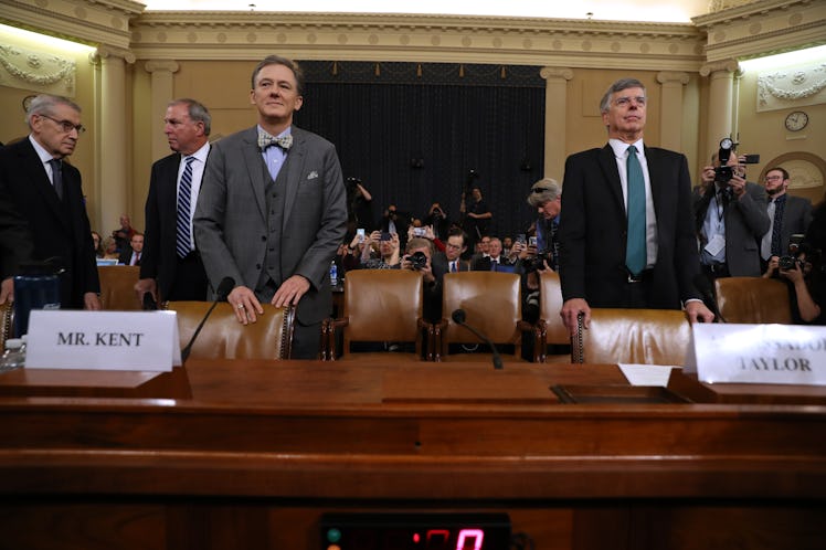 Once Kent and Taylor started their testimony, Twitter users shared some commentary, noting Taylor "brought the receipts" during his lengthy and meticulous opening statement. Taylor said he believed the Trump administration withheld military aid from Ukraine until the investigation into the Bidens was complete. "This was my clear understanding, security assistance money would not come until [Zelensky] committed to pursue the investigation," Taylor told legislators. Elite Daily reached out to the White House for comment on Taylor's remark, but did not hear back in time for publication.