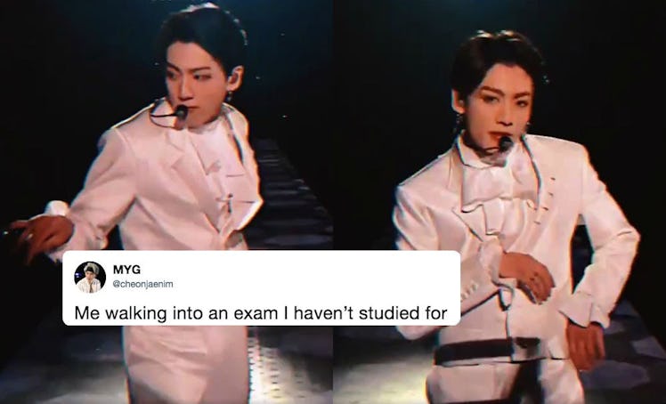 During the final ceremony in Hong Kong on Dec. 14, the boy band performed their song, "Airplane Pt. 2," off of their 2018 album Love Yourself: Tear, but it was Jungkook's entrance that really stole the show that night. He walked down the runway like he was Beyoncé, and it was so awe-inspiring that someone decided to overlay Beyoncé's hit song to Jungkook's power walk on stage. Of course, this became a meme almost instantly, and naturally, Twitter delivered.
