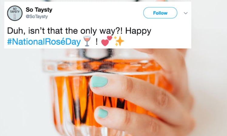 See what I mean? People are really passionate about their rosé. If you feel the same way, maybe you should hop on board the Twitter train and share a meme proclaiming your love for it. Or, you can post a photo of your rosé onto Instagram so all of your followers know how you're celebrating. If you choose the latter, make sure you check out these National Rosé Day Instagram captions. If you write something witty, and say, "I'm on cloud wine," or "Wine flies when you're having fun," you're sure to rake in all of the IG likes.