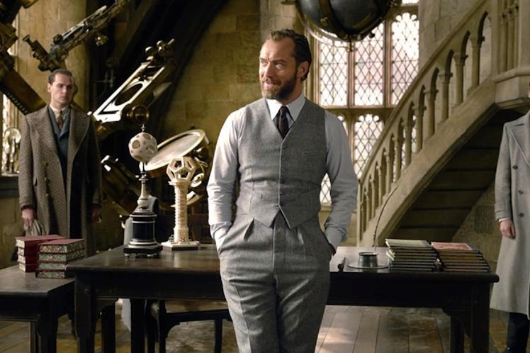 In a new interview with Entertainment Weekly, Law is basically the typically taciturn, vague British star who can only say so little about the latest Potter-associated movie. As the Crimes of Grindelwald trailer revealed, Dumbledore, a Hogwarts professor at this point of the Wizarding World timeline, enlists Newt Scamander to track down Gellert Grindelwald and defeat him. Hardcore Potterheads know that Dumbledore and Grindelwald had a relationship with each other as teenagers, but it's unclear how far Crimes of Grindelwald will delve into the two's backstory. After all, there are three more movies after this one in the Fantastic Beasts franchise, and Warner Bros. can't exactly spill all the dirt right away.
