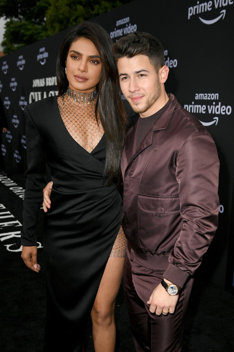 Chopra and Jonas turned heads at Ralph Lauren’s 50th-anniversary celebration in early September 2018, at which point, they were officially dating. Jonas continued his trend of eye-catching tuxedo looks with a white jacket and black pants. Chopra opted for a shimmery long-sleeved dress.