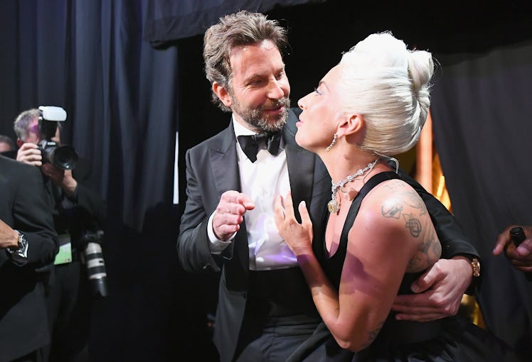 A Star is Born might not have won the Best Picture Oscar, but its stars did win a whole lot of love from fans everywhere. The "Shallow" duet was the Oscars performance that launched a million memes and made even more hearts melt, as the audience got to soak in the stars' near-tangible chemistry. But, while what the audience saw on stage was amazing, these photos of Lady Gaga and Bradley Cooper backstage at the Oscars are even better.
