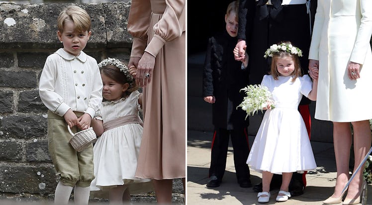 Weddings are, above all, family events. While many family traditions have melted away in the face of the 21st century and societal changes, this one constant is true. When weddings happen, family members from far-flung areas get invited, and in the right kind of environment, the ceremony can be just as much a family reunion, and a chance to see how people are aging. Kids, of course, age quickest, and royal children are no different in that regard, which is why these photos of Princess Charlotte and Prince George at Prince Harry, Duke of Sussex and Meghan Markle's wedding show just how much the two little ones have grown since the last big family wedding.