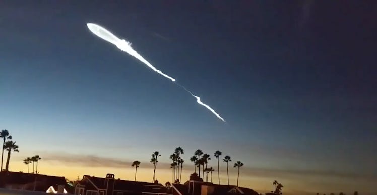 On Friday, Dec. 22, Californians took to Twitter to ponder what exactly they were seeing in the sky. Some called it a UFO; others had absolutely no idea what it was. However, they soon realized that it was a rocket, specifically the SpaceX Falcon 9 rocket, which launched from California's Vandenberg Air Force Base at 5:27 p.m. PT. Luckily for East Coasters, witnesses documented the sight, and their photos of the SpaceX rocket launch are unreal.