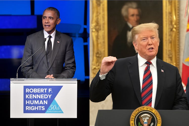 It's a marked difference from the way Obama's second State of the Union shook out, in a time of different crisis. Looking back to Jan. 25, 2011, Obama stepped up to the podium and gave his second State of the Union just weeks after the tragedy in Tuscon, Arizona where Rep. Gabby Giffords of Arizona was shot along with 18 others outside of a supermarket — and the shooting shaped much of Obama's 2011 address. Both the 2011 State of the Union and the 2019 State of the Union came at crucial and possible shaky moments of Obama and Trump's presidencies, albeit for very different reasons, so it's worth looking back at Obama's second State of the Union compared to Trump's.