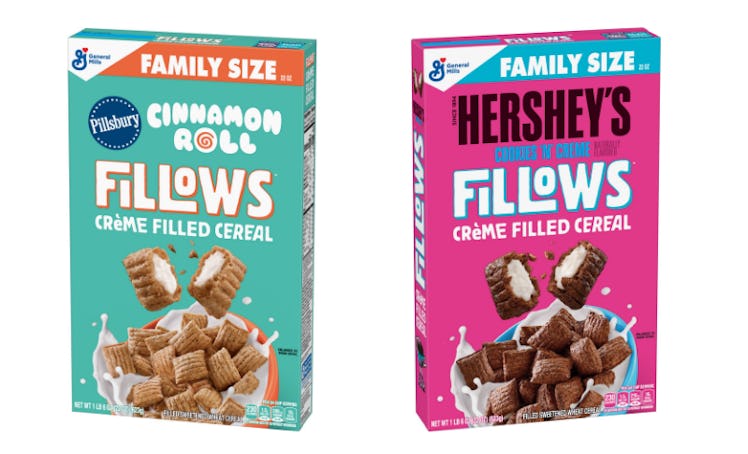 TBH, I'd say the addition of milk is totally optional in this case, because each of these Fillows varieties look like they'd be a tasty snack on their own, thanks to what I can only imagine is an ideal crunch-to-icing ratio. According to a General Mills rep, both Hershey's Cookies 'n' Crème and Pillsbury Cinnamon Roll Fillows are currently available at "select stores" for just $3.98 for a Family Size pack, and they will be heading to Walmart locations starting the week of Monday, May 20. Unfortunately, the Fillows line won't be receiving a more comprehensive rollout until the fall, so I wouldn't be too worried if you don't see a box of these bad boys on your grocery store shelves just yet.