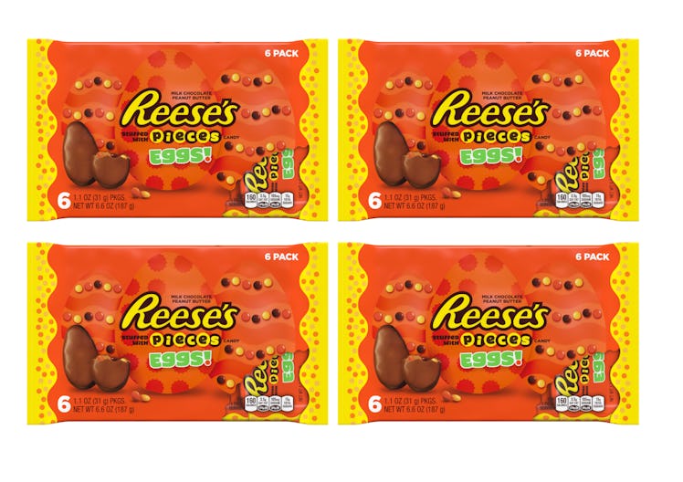 New Reese’s stuffed with Reese's Pieces Eggs are already on shelves as of publication on Feb. 28, at stores like Target and Walmart, but if you haven't tasted the Easter-themed candy yet, allow me to describe it. Each package, priced at $4.29, comes with six milk chocolate and Reese's peanut butter eggs. The hollow eggs are stuffed with crunchy peanut butter and chocolate Reese's Pieces candy so you get double the chocolate and double the peanut butter with each bite, not to mention the smooth, crunchy, and creamy textures your mouth will experience all at once. Walmart describes this heavenly candy collab as "delicious" on its website, noting that "these fun, snack-sized eggs make a great addition to baskets or Easter gift bags." These seasonal treats will only be available for a limited time, per Hershey's.