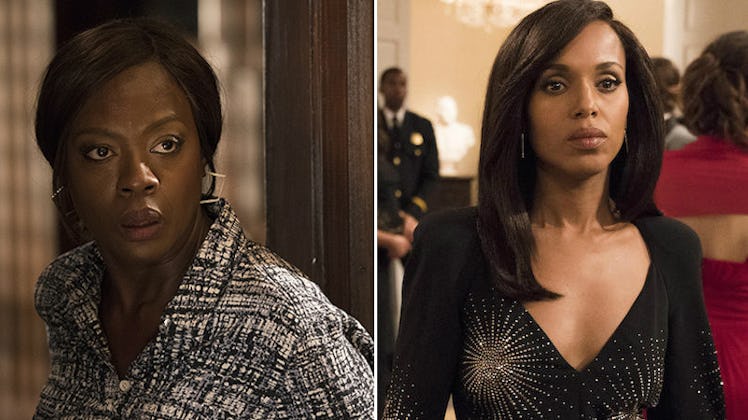 Scandal and How To Get Away With Murder feature two of Rimes' most popular leads. Kerry Washington stars in the former as political fixer Olivia Pope, and Viola Davis stars in the latter as Annalise Keating, a law professor and defense attorney. The two shows are multiple Emmy and NAACP Image award winners, with Davis becoming the first black woman to win an Emmy Award for Outstanding Lead Actress in a Drama Series for her work on the show. Both shows are notable for being some of the few broadcast network series to star strong black female characters in the leading role.