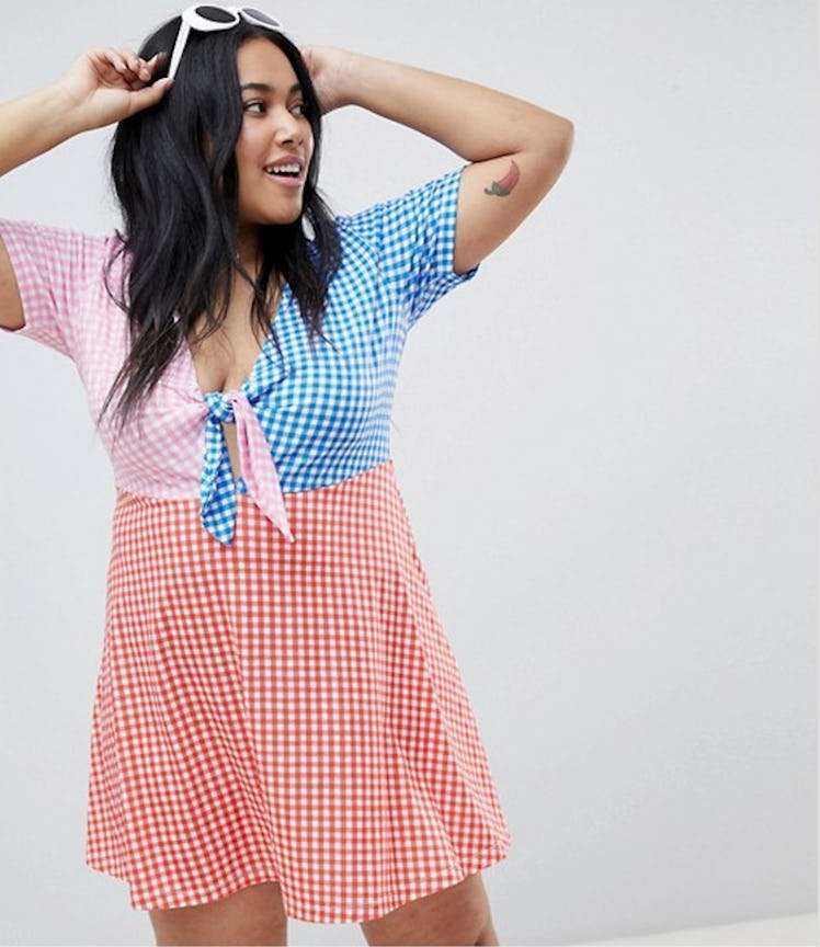 Tri-tone gingham with a cool tie detail? Yes, please! I love the bright, colorful palette and simple skater silhouette of this dress.