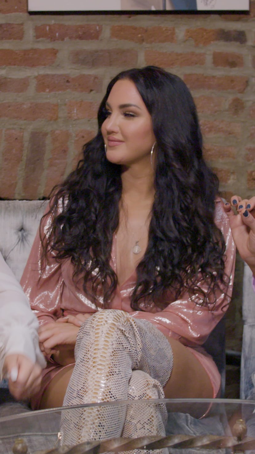 I admittedly don't know much about Nat and Liv before they walk in the door, besides that they're friends with Kim Kardashian and they have a combined 6.4 million Instagram followers. But one thing I know (or knew, I guess) was that they each had stunning brunette hair that rolled endlessly down their backs. Nat still has hers, looking shiny as ever as the overhead camera lights reflect off of her hair like a mirror. But now, Liv's new champagne-colored cut stops short of her shoulders. It is a drastic, gorgeous change. As soon as we sit down with our tarot reader, Heather Hogan, Liv's hand shoots up to get her cards read first. She tells Heather she wants to know more about her love life. Immediately, I theorize that maybe Liv's hair metamorphosis could go deeper than I initially thought.