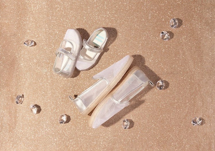The Cinderella Glitter Mesh slip-on is available from sizes 5 through 12, because you're never too old to channel your inner princess. But for the little princesses in your life, the Disney X TOMS Cinderella Glitter Mesh Tiny TOMS Mary Jane Flats ($49; toms.com) are also available in child sizes 2 through 11, and have a silver strap across the foot.