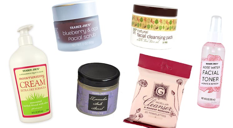 Pretty much every time I'm stocking up on groceries and inexpensive wine at Trader Joe's, I find myself tempted to browse its beauty section, too. As if shopping for makeup at stores like Sephora, Ulta, and drugstores wasn't enough, it seems now that grocery stores want in on the action too, and I've come across entire beauty aisles in not just TJ's, but Whole Foods and other health food stores as well. I know they might not seem like your first choices when it comes to shopping for lipstick and liner, but I'm here to argue that the below Trader Joe’s beauty products are definitely worth picking up, especially if you're looking to snag some great new, natural skincare.
