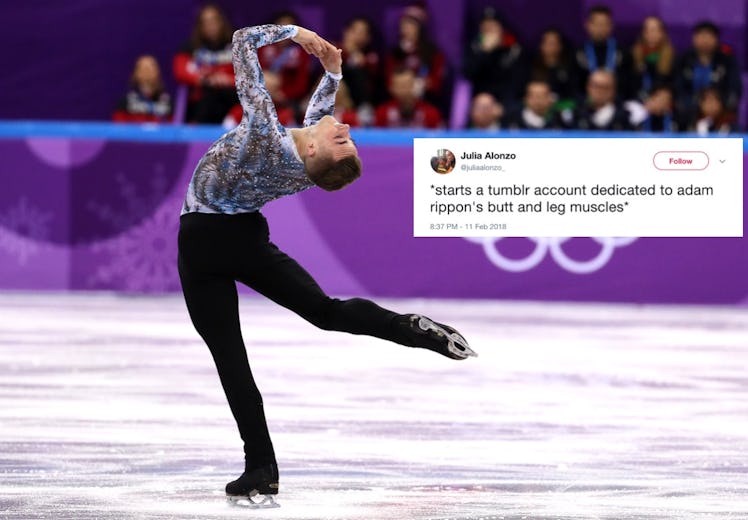 Either way, here's what you missed: On Monday, Feb. 12, Adam Rippon, one of the Team USA favorites for figure skating, delivered a nearly flawless free skate program, then promptly got roasted (in a friendly way) on social media for how his butt looks — because that's what's important to people, apparently.