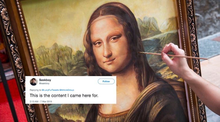 It's no secret that Apple's AirPods are a status symbol for many people. You've probably seen people wearing them on your commute into the office or when you're at your local coffee shop. But, what you probably never expected to see was paintings from the past rockin' a pair of the tiny white headphones. Thanks to Twitter, now you can. These tweets about AirPods in famous works of art are seriously cracking me up, and I think Mona Lisa would agree.