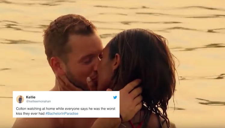 It's not uncommon for former Bachelors and Bachelorettes to make an appearance on Bachelor in Paradise. In fact, Hannah Brown just showed up in Paradise on the Aug. 19 episode. But sometimes, a Bachelor might show up just as the topic of a super-awkward conversation. On the Aug. 26 episode, the Bachelor in Paradise ladies from Colton Underwoods's season of The Bachelor got asked about his skills as a kisser, and their answers were... less than complimentary. These tweets about Bachelor in Paradise contestants calling Colton a "bad kisser" are a lot to handle, and clearly, fans are shook.
