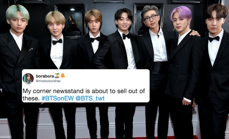 Yo, ARMY: You better head on out to your local newsstand ASAP if you haven't already. Because Entertainment Weekly's special double issue for the weeks of April 5 and April 12 just dropped, and BTS is on the cover. You heard me. BTS is currently covering EW magazine. So if you don't run out and cop a copy or 10 right this very minute, you're probably gonna miss the whole amazing thing. This is so huge, you guys! I mean, it really doesn't get more mainstream in America. And judging by these tweets about BTS' Entertainment Weekly cover, fans are so proud of how far the seven-member K-pop band has come, that scoring one lone copy of this milestone issue just ain't gonna cut it.