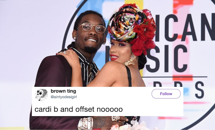 Music fans are reeling from the news that Cardi B and Offset have ended their relationship. The "I Like It" rapper made the announcement on Instagram in the wee hours of Tuesday, Dec. 4, saying that she still has "a lot of love" for the Migos member but they're "not together anymore." For many of their followers, it feels like the split came out of nowhere. Now, the tweets about Cardi B and Offset's breakup are all over the emotional spectrum while fans grapple with the news.