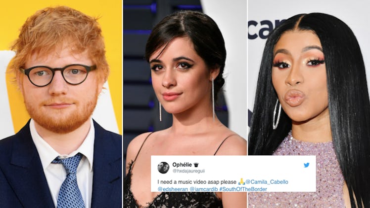 What do you get when you put Ed Sheeran, Camila Cabello, and Cardi B together on one track? One hell of a smoking hot summer. That's what. This unexpected but super exciting trio just dropped the instant hit "South of The Border," and their collective fanbase is losing it. Tweets about Ed Sheeran, Camila Cabello, and Cardi B's "South Of The Border" show this combination of artists is a listener's dream and that the song is somehow for everyone. Love to love it, guys! But fans do have one big question: Where the F$%# is the music video?