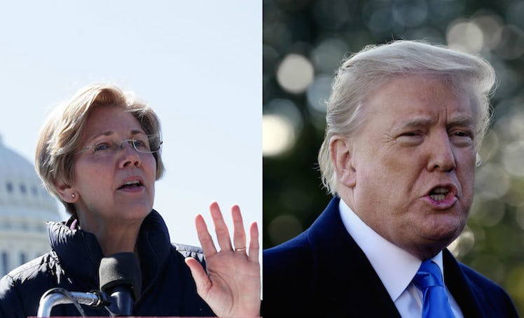 Clearly Twitter is eager for Trump to live up to his side of the bet, but it doesn't seem like that'll be happening anytime soon. In response to Warren releasing her DNA results, Trump spoke to reporters on the White House South Lawn on Oct. 15 and boldly declared "who cares," while denying he promised to give $1 million to Warren. Elite Daily reached out to the White House for further comment, but did not immediately hear back.
