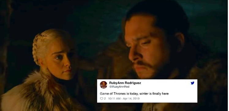 Well, my fellow Westerosis, members of the Night's Watch, and honorary Faceless Men, our big day has finally come. After an unbearably long wait (it's hard to believe it's been almost two years!) Game Of Thrones Season 8 is officially premiering as of Sunday, April 14, and in all honesty, I could not be more ready. It seems as though most GOT fans kind of have the same mindset right now, though, and if you haven't already seen each and every one these tweets about Game Of Thrones' premiere day, they include a mix of super relatable emotions. I'm quite literally beside myself at this moment in time.