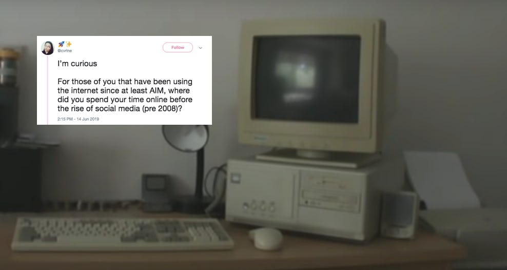 The possibilities of the world wide web (prior to the social media boom) seemed truly endless. And it looks like I'm not the only one who thought so. On Friday, June 14, tech entrepreneur @cvrlne posted the below tweet, to see what us ~elderly~ internet users used to do online, asking:
