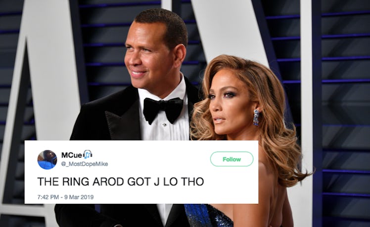 The internet is reacting after J-Rod announced that they are heading down the aisle in a set of matching Instagram posts on Saturday, March 9. Alex Rodriguez proposed to longtime love Jennifer Lopez with a massive ring reportedly worth $1 million, and these tweets about Jennifer Lopez and Alex Rodriguez's engagement are losing it over the stunning sparkler.