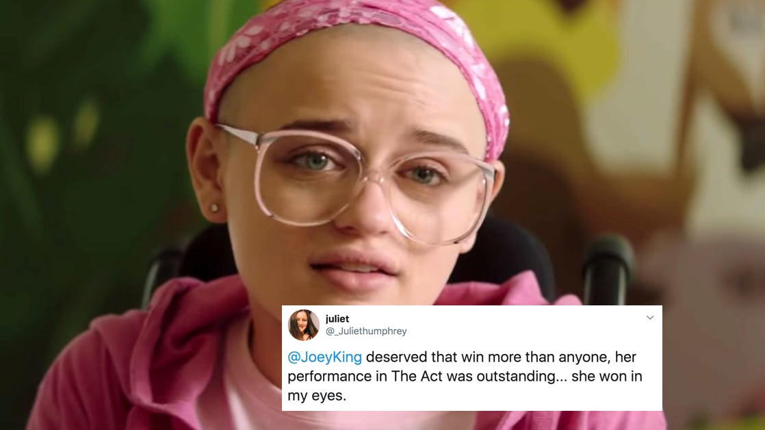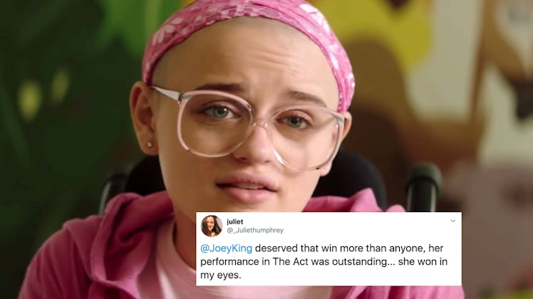 Playing a real-life person is a challenge for any actor, especially when that real-life person has as dark a story as Gypsy Rose Blanchard. But, that was the task at hand for Joey King when she set out to tell the true story of a young woman whose mother's twisted manipulation led to murder in Hulu's The Act. The role earned her a 2019 Emmy nomination for Lead Actress in a Limited Series, but unfortunately she didn't take home the award. These tweets about Joey King's 2019 Emmy snub show just upset fans are for her.