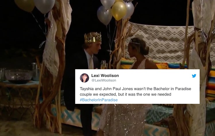 Sometimes Bachelor in Paradise can feel a lot like high school. After all, both situations bring a bunch of different people together in close quarters, making both situations perfectly primed for gossip, drama, and crushes. It was only a matter of time before the Bachelor franchise gave its contestants a taste of a real high school experience, and that's what happened in the Sept. 9 episode, when John Paul Jones decided to invite Tayshia Adams to "Paradise Prom." These tweets about John Paul Jones and Tayshia's Bachelor in Paradise prom are so sweet.