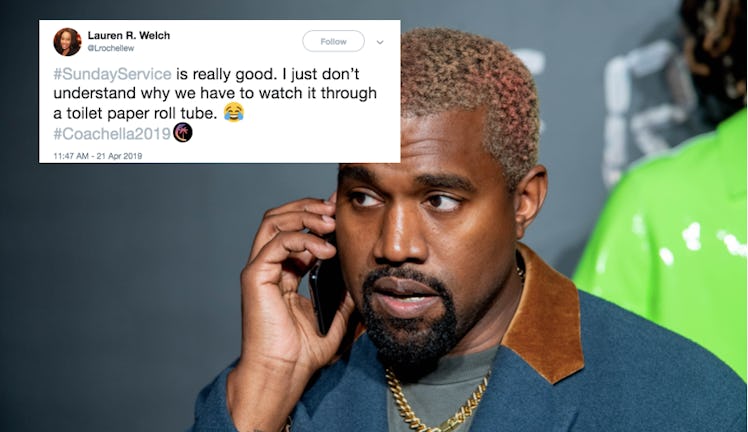 No matter how you personally feel about the man, I think there's no denying that Kanye West has been a major vanguard at the forefront of the music industry in the almost two decades he's been making and producing chart-toppers. The rapper likes to experiment with different sounds, visuals, and more when it comes to his music, so it's not surprising that he took an artistic risk when it came to streaming his highly-anticipated Sunday Service performance in Indio, California on Sunday, April 21. With every innovative idea, there's always the chance that it won't pay off or will fall flat, and these tweets about Kanye's Sunday Service at Coachella all roasted an unusual visual choice the singer made when presenting his music at the annual festival.