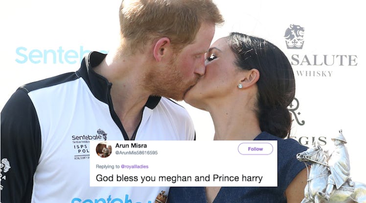 It's a great day to be alive, world. Prince Harry and Meghan Markle, Duke and Duchess of Sussex, gifted us with the most perfect moment during his polo match on Thursday, July 26. The happy couple leaned in to give each other a sweet smooch in front of cameras and people are losing it. These tweets about Meghan Markle and Prince Harry kissing show fans are wild for royal PDA, and you know what? I am too. We're all just a couple of insecure teenagers looking for real love from a prince or princess, aren't we?