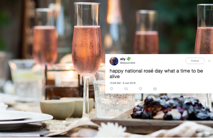 Nothing beats a good holiday celebration, especially if it involves rosé. There are so many fun things to do in celebration of the big day, and it's evident that the Twittersphere is going all out for it. Whether you're staying in and enjoying a glass, if you're on a rosé-filled adventure, or if you're vowing to celebrate this holiday every single day of the year, there's no wrong way to celebrate, and the parties have just begun. Don't forget to sip responsibly (and make sure you're over 21 years old).
