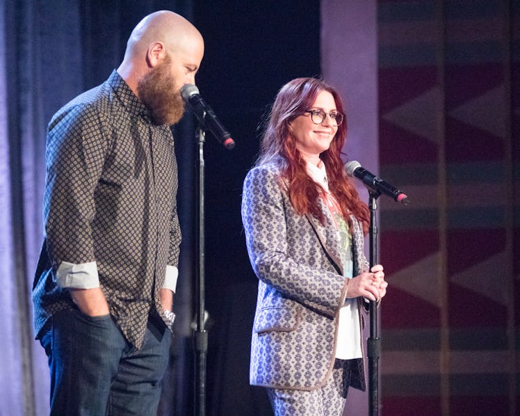 It's only the second week of The Bachelor, and already the ladies are looking to some celebrities to help them out. Fans erupted when Nick Offerman and Megan Mullally appeared on The Bachelor and the tweets definitely make you laugh out loud. The married couple has been sharing a lot of relationship advice recently, as they've been promoting the book they co-wrote together, aptly titled The Greatest Love Story Ever Told: An Oral History. So it makes perfect sense that they would come on The Bachelor to help Colton find his great love story.