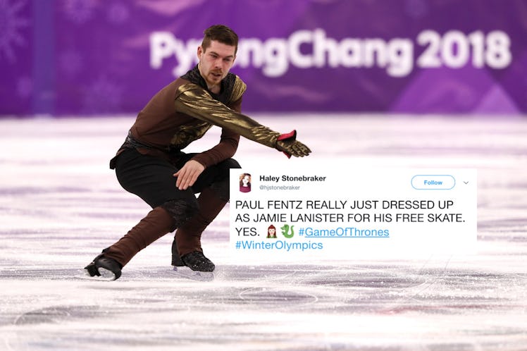 Figure skating is one of my favorite Winter Olympic sports to watch, and it's always a delight to watch the non-American skaters we don't know too much about shine in unexpected routines. Such is the case for German figure skater Paul Fentz, who performed in PyeongChang on Saturday morning (Friday night in the U.S.) at the Men's Single Free Skating program to music from Games of Thrones. Tweets about Paul Fentz's Games of Thrones skate have praised the athlete for his modern, understandably epic choice of music in his free program routine.