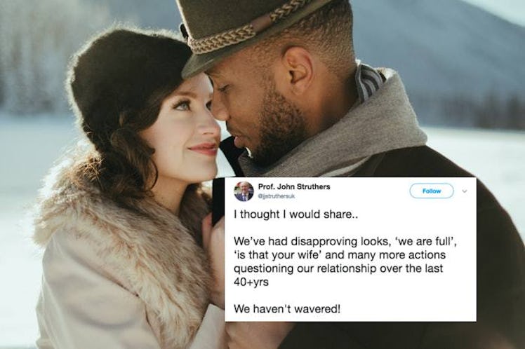The conversation started when John Struthers (@jjstruthersuk on Twitter), a professor of economics in Scotland, posted a photo of himself with his wife, who's from Ghana. He posted the beautiful photo, along with the following, caption: