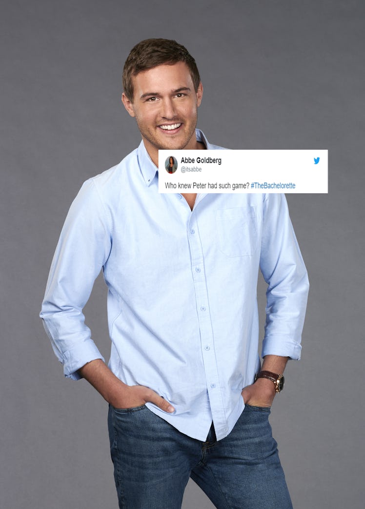 It finally happened, ladies and gents. The Bachelorette's Peter, otherwise known as Pilot Pete, received a one-on-one date with Hannah Brown after stealing the hearts of Bachelor Nation with his pilot uniform, flying puns, and low-key charm. It's been a long few weeks of having to settle for fleeting footage of Peter shining bright, but tweets about Peter and Hannah on The Bachelorette prove that the pilot's fans are ready to reach even higher altitudes with him.