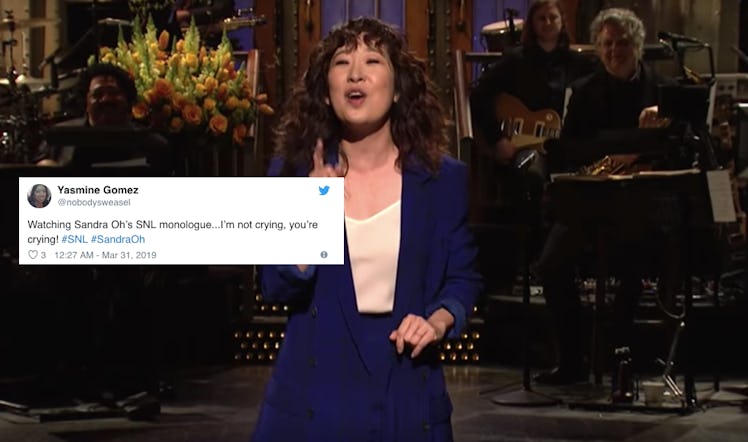 After several years of slaying the game as a TV star, Sandra Oh has an incredibly extensive fanbase. Her latest role as a British spy on Killing Eve has proved to be a huge success (they just released Season 2!), and of course, she nailed it as Dr. Cristina Yang on Grey's Anatomy (just thinking about it makes me cry, LOL). For real — nobody can deny that Sandra Oh is a ridiculously talented actress. And based on these tweets about Sandra Oh hosting SNL during the March 30 episode, it looks like she also happens to be a really solid TV host as well. In all honesty, though, I am definitely not surprised.