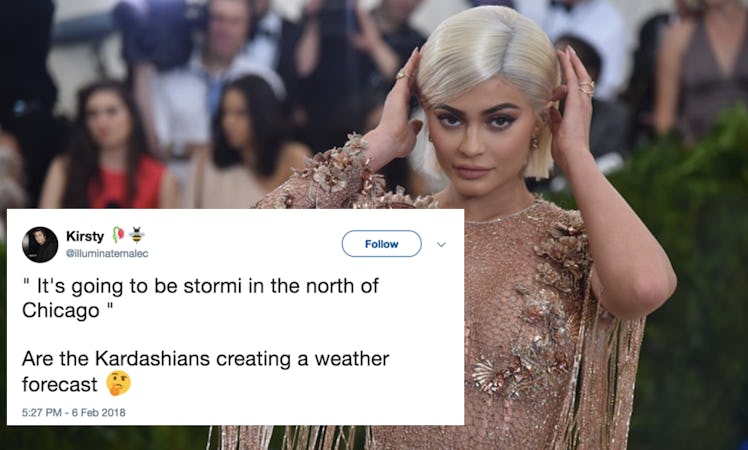 Everyone on Twitter is relating Stormi's name to Kim Kardashian's daughters' names, which are North and Chicago West. Think about it: Chicago is a state, "North" is a direction, and "Stormi" can be interpreted as a weather condition (as in, it's "stormy" outside). With that being said, everyone's feeling extra witty and decided to bring their weather-related tweets to the internet.