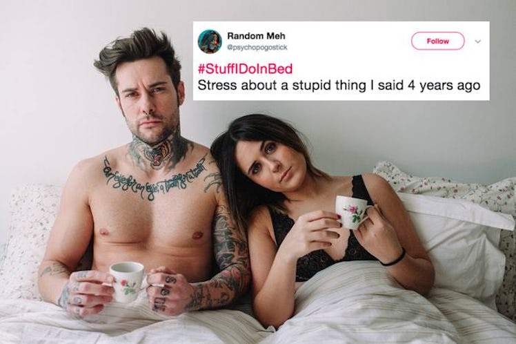 What do you do in bed? At first glance, that question sounds dirty to me. And, honestly, I wish I was doing some dirty, crazy things in bed, but realistically, what I do in bed isn't all that exciting. I sleep. I stress about stupid stuff that doesn't matter. I take an Advil PM if my ears are aching. I watch Friends reruns. I FaceTime people. I think about how much sleep I'm not getting, and I waste time on social media. And these tweets about stuff people do in bed prove I'm not the only one doing boring stuff in bed.
