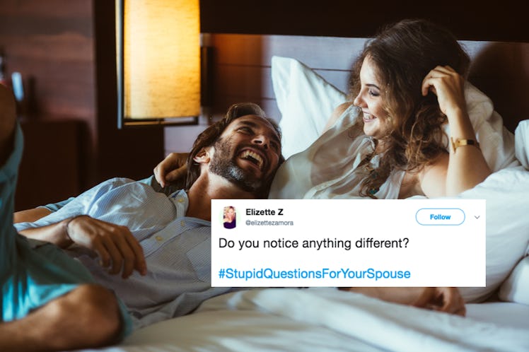 People have spent all day on Twitter writing about the worst things you can possibly ask your spouse with the hashtag #StupidQuestionsForYourSpouse. Now, before we start reading these and relentlessly judging the people who would think to ask such dumb questions, let's remember that asking a dumb question does not necessarily make you a dumb person. In fact, I'd be willing to venture that every single person reading this has asked a stupid question of their own at one point or another. So, to avoid asking them any more, let's just try to use these as learning lessons. Read along, cringe, and try your best to avoid making the same mistakes as these people.